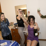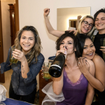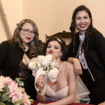 Particolarmente divertenti e gioiosi i momenti dei preparativi. Nella abitazione della sposa c’erano infatti numerose amiche indaffarate nei preparativi oltre alla parrucchiera; per stemperare la tensione montante di Alessandra e dei presenti, una delle ragazze ha promosso una sorta di brindisi collettivo con apertura di una bottiglia di spumante ben augurante.